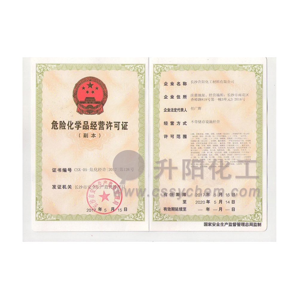 長(zhǎng)沙升陽化工材料有限公司成立于2009年,是一家已經(jīng)擁有10年化工原料經(jīng)營歷史的企業(yè)。我們本著“服務(wù)至上,以誠為本”的原則,為廣大的新老客戶提供最優(yōu)質(zhì)的產(chǎn)品、最便捷的服務(wù)。歷經(jīng)10多年的積淀與發(fā)展,現(xiàn)已成長(zhǎng)為湖南省頗具規(guī)模的專業(yè)化學(xué)品服務(wù)供應(yīng)商之一。?公司集貿(mào)易,科研,倉儲(chǔ),物流為
